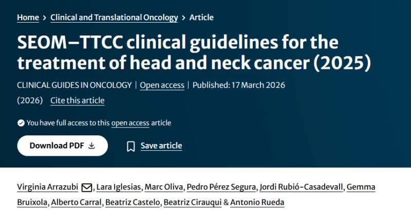 Open access en Clinical & Translational Oncology (CTO)la Guía SEOM-TTCC de cáncer de cabeza y cuello (2025). Protocolo de práctica clínica de referencia que recoge la evidencia disponible y las opciones terapéuticas en España. @_SEOM @FundacionTTCC